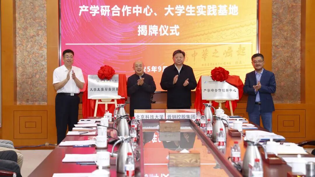 ▲晋钢与北京科技大学产学研合作中心、大学生实践基地揭牌仪式。