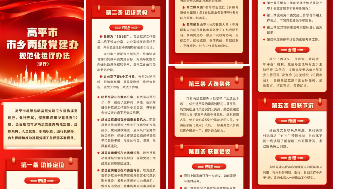 高平市率先制定《市乡两级党建办规范化运行办法(试行)》,以“10条硬核举措”破解基层党建机构职责不清、运行不畅难题。