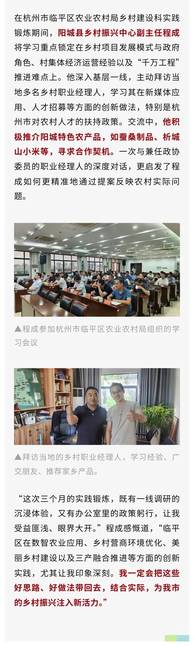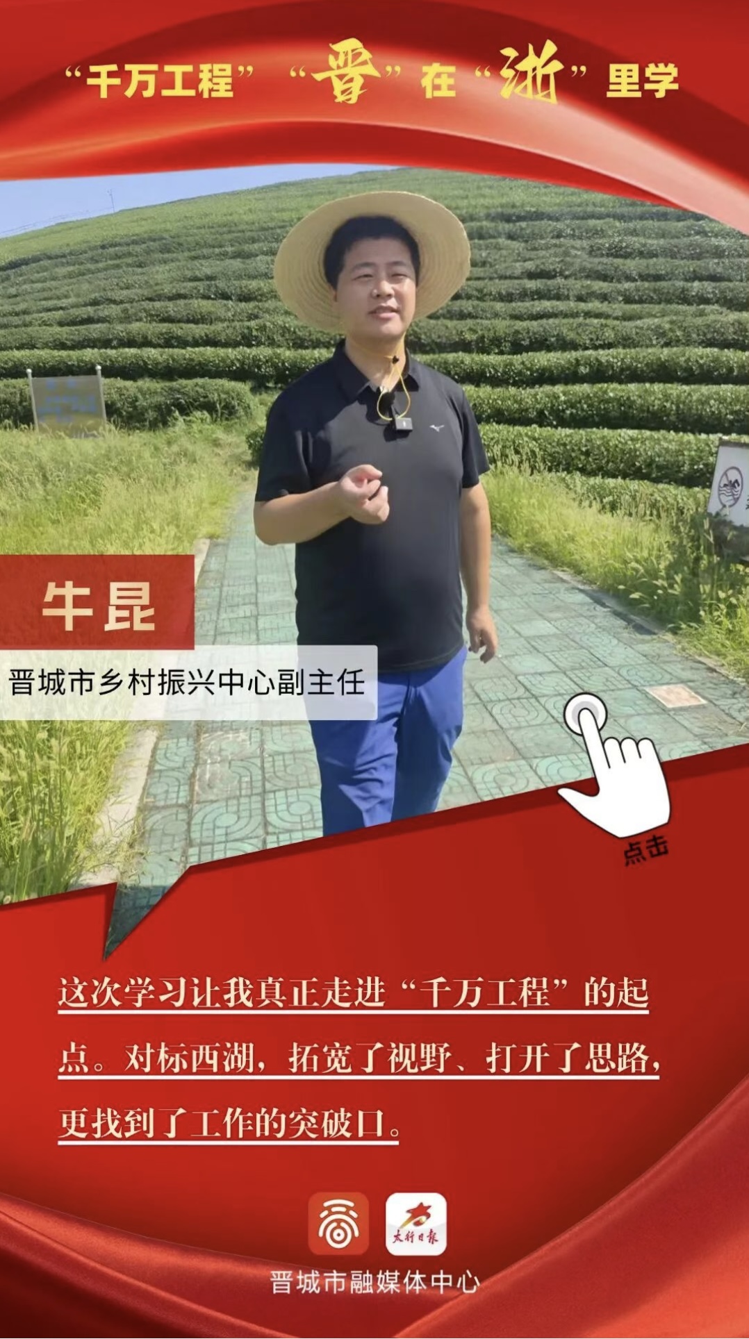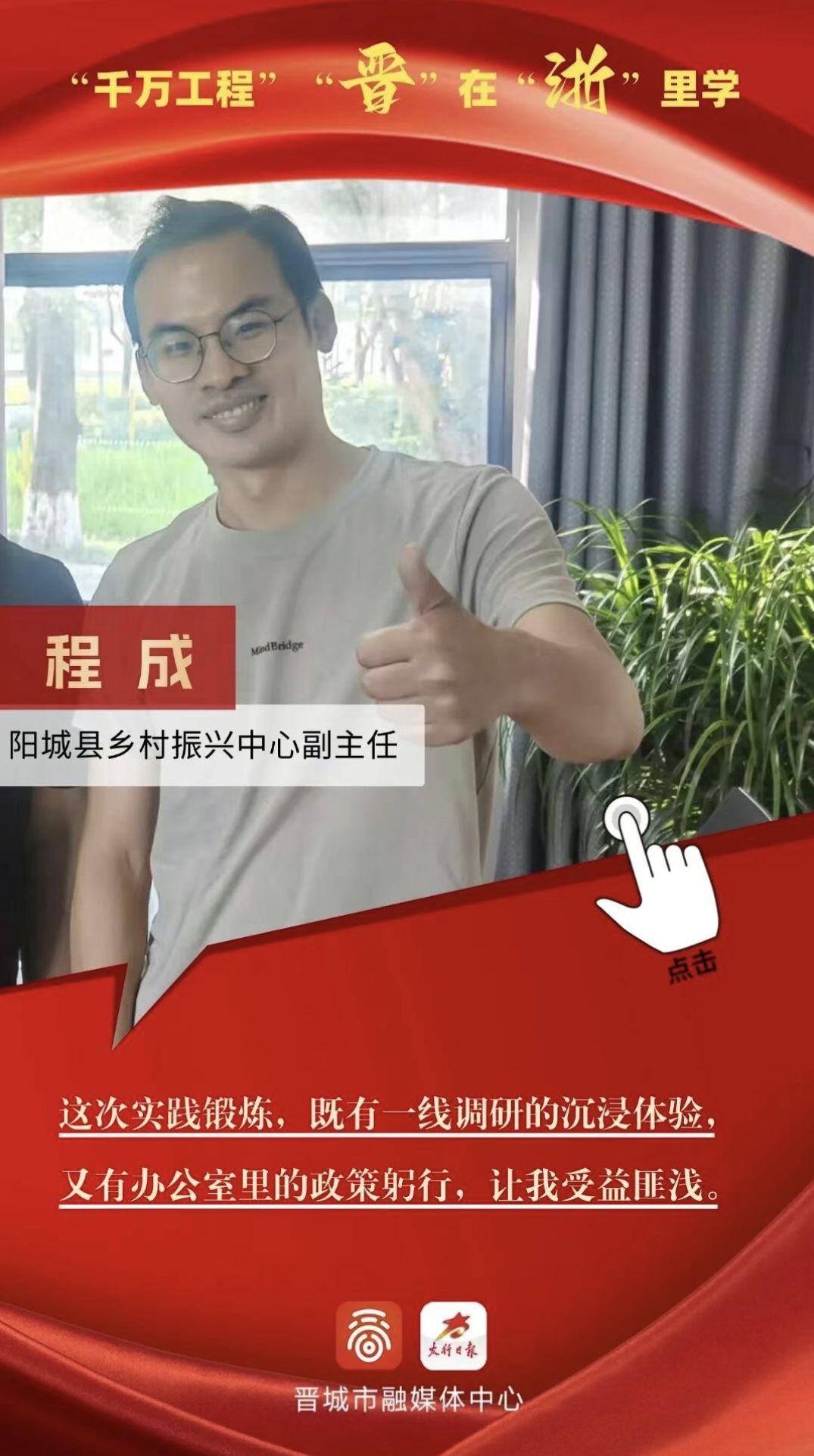 以浙江为镜,照见的不仅是差距,更是潜力;借他山之石,打磨的不仅是方法,更是道路。五名年轻干部带着浙江经验的“新种子”重返晋城热土,将把江南智慧与太行风骨深度融合,全力推动晋城实践迭代升级,努力让“千万工程”经验在太行之巅绽放出更加绚烂的光彩。