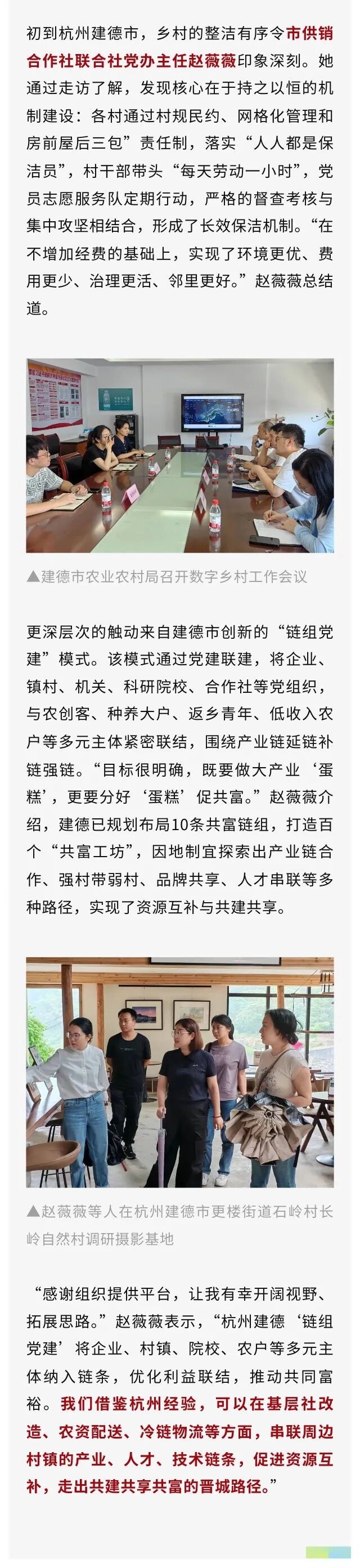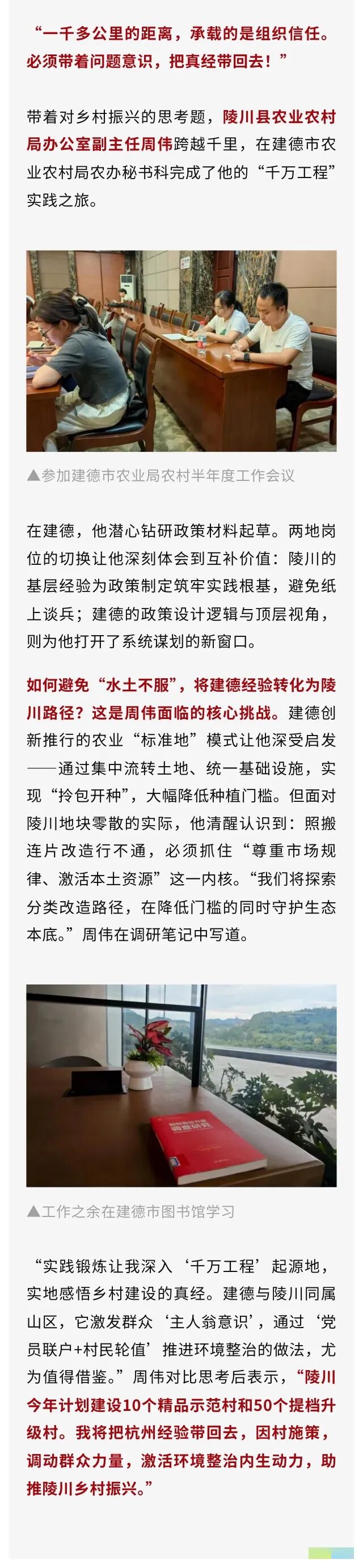 三个月的实践锻炼中,15名干部深入浙江省田间地头,在“千村示范、万村整治”中领悟真谛,在“千村精品、万村美丽”中学习要义,在“千村未来、万村共富”中探索真理,通过对标先进、找准差距、提升能力,深度解析“浙江密码”,把更多“浙江路径”转化为符合晋城发展实际的“本土解法”。