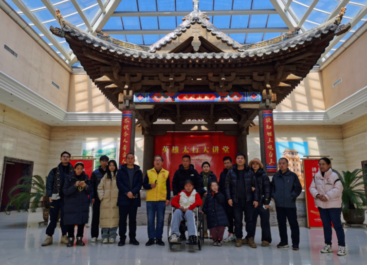 ▲晋城博物馆义务讲解结束后,游客和张新虎合影。