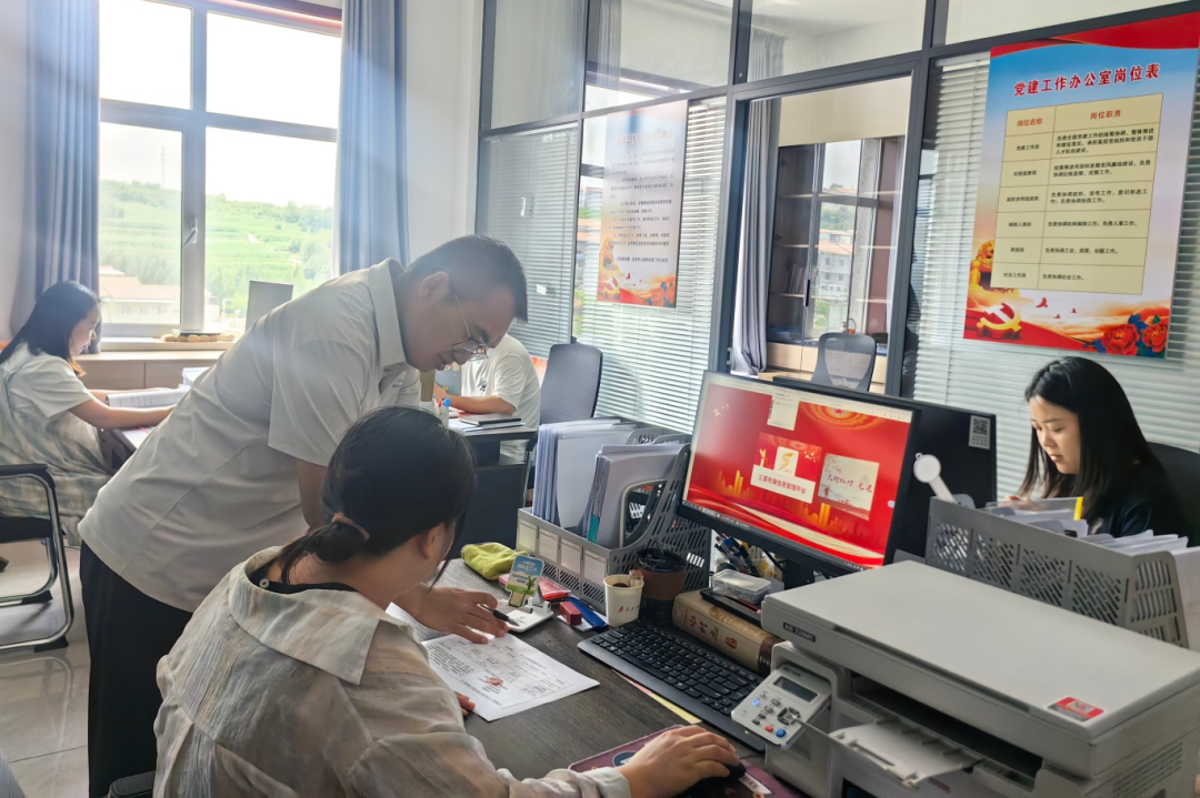 ▲东冶镇党建办工作人员统计分析农村党建工作数据,推进乡镇党建信息化管理。