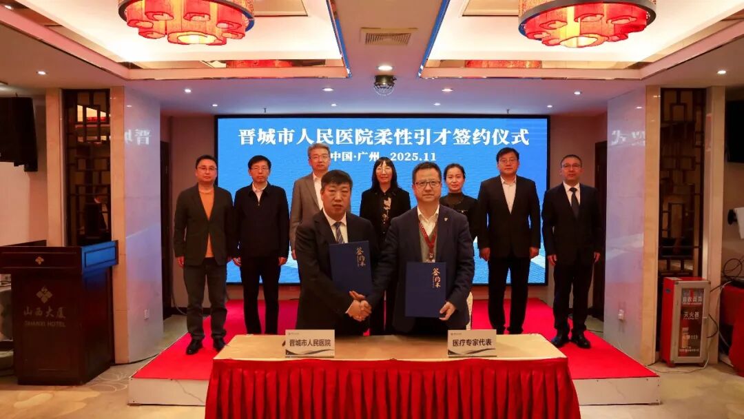 ▲晋城市人民医院柔性引才签约座谈会(广州专场)举办,与16位广州医疗专家签约合作。