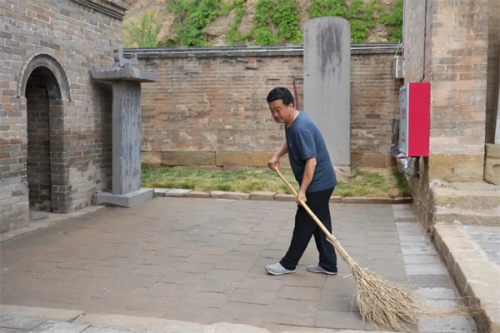 秋观屋檐除野草,冬踏风雪扫山门