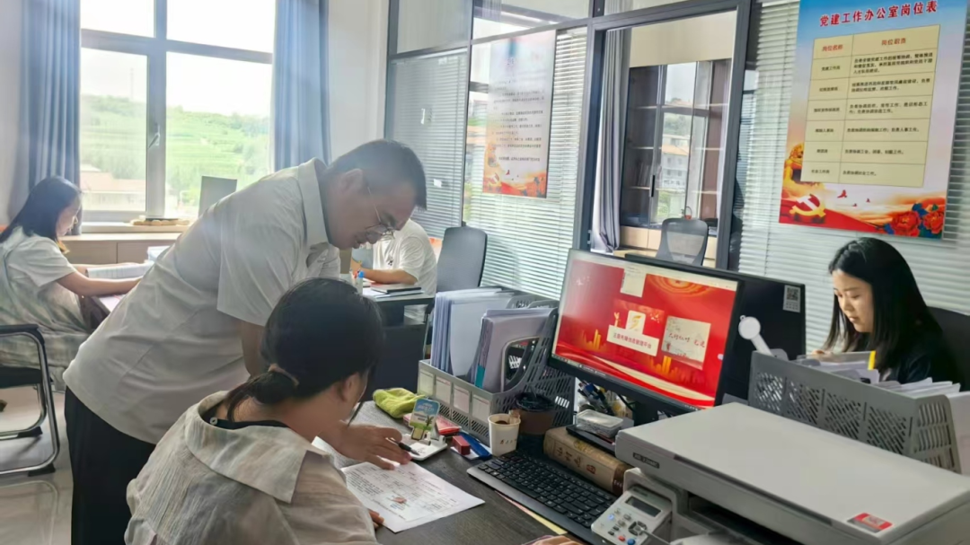 ▲阳城县东冶镇党建办工作人员正研究讨论工作。