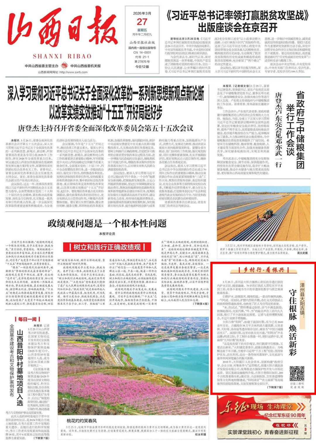 《山西日报》头版关注 泽州县大阳古镇:守住根脉 焕活新彩