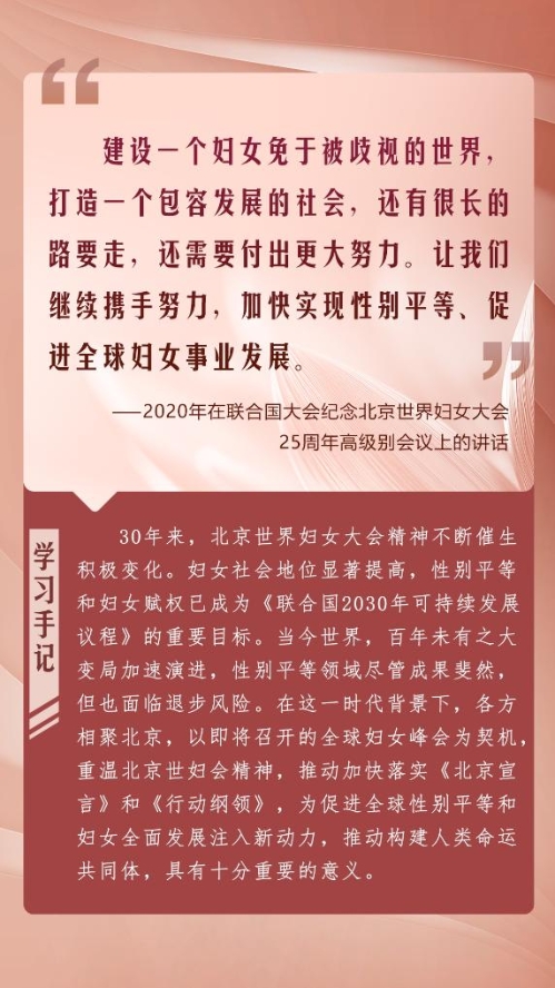 在全球妇女峰会即将举行之际,我们重温习近平总书记的重要论述,共同展望妇女发展的美好未来,期待全球妇女事业发展谱写新的绚烂篇章。